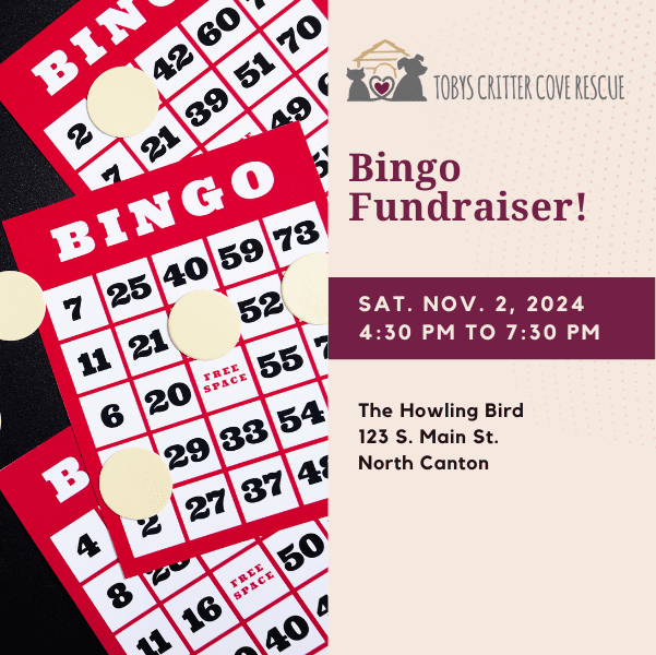Toby’s Critter Cove Rescue Bingo Fundraiser!