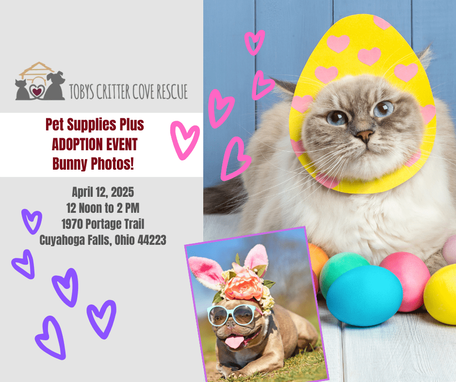 Join us on April 12th from 12pm to 2pm for Bunny photos with your pets and Adoption Event!
