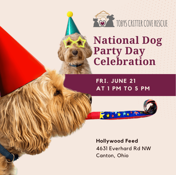 Toby’s Critter Cove will be joining us from 1pm to around 3pm, so stop by to party with some of their adoptable dogs