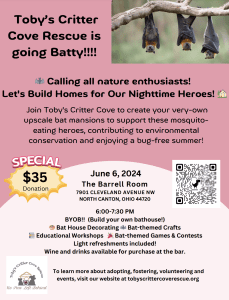 Join Toby’s Critter Cove to create your very own upscale bat mansion to support these mosquito eating heroes!